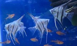 普通のエンゼルフィッシュとは別種のエンゼルで、上下にピンと伸びるヒレや独特のバンド模様など、独特な外見をしています。入荷数が少なく、時期も限られているので珍しい種類です。 |