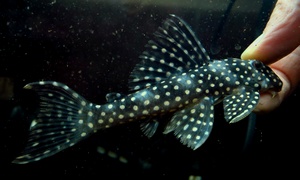 ダルマプレコの仲間で、黒い体に青白いスポット模様が入ります。 |