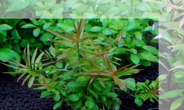 先の尖った細長い葉が互生する有茎水草です。条件によって葉に赤みが出ます。 |