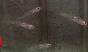 | ●国産ハーフブラックグラスグッピー(ペア) \1500 | 国産ガラスのブルーグラスグッピー(ペア) \1500 | ||