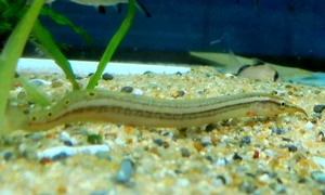 頭でっかちの体型とギザギザの黒いラインが特徴のローチです。底に潜ったり砂を吸い込んでエラから出しながら掘り進む様子が見られます。 |