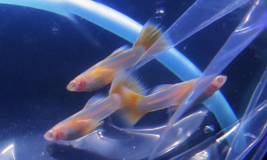 | 国産ドイツイエロータキシードグッピー(ペア)¥1800 | 国産フルレッドグッピー(ペア)¥1800 |