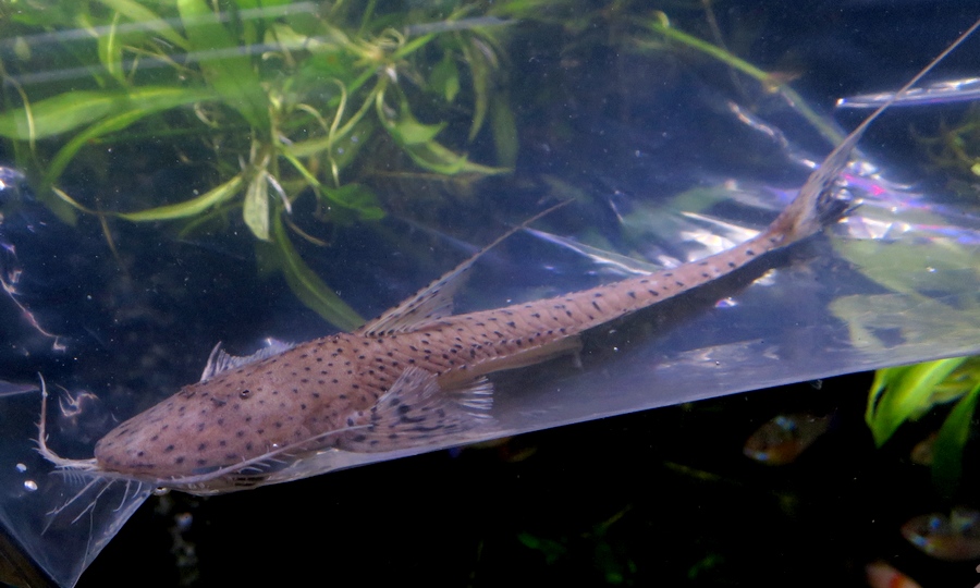 ■バンジョーキャット |¥980 頭が大きく平べったい体型で、上から見ると楽器の「バンジョー」に似ている個性的なナマズです。 |