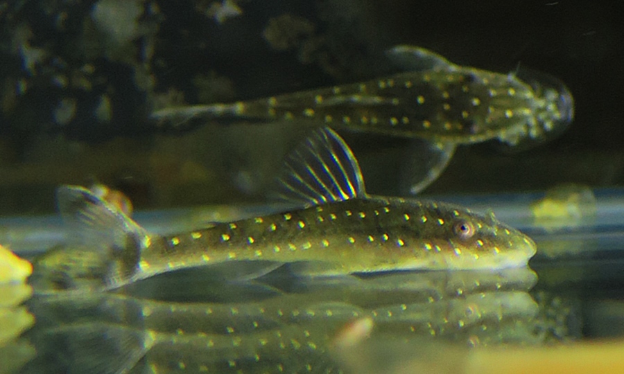 ■ハラ・ジェルドニ (売切れ)||¥450 南アジア産の小型のナマズの仲間です。近縁のハラ・ハラ種が「ハラハラキャット」として有名で、本種も同様の名前で販売されることもあります。 |