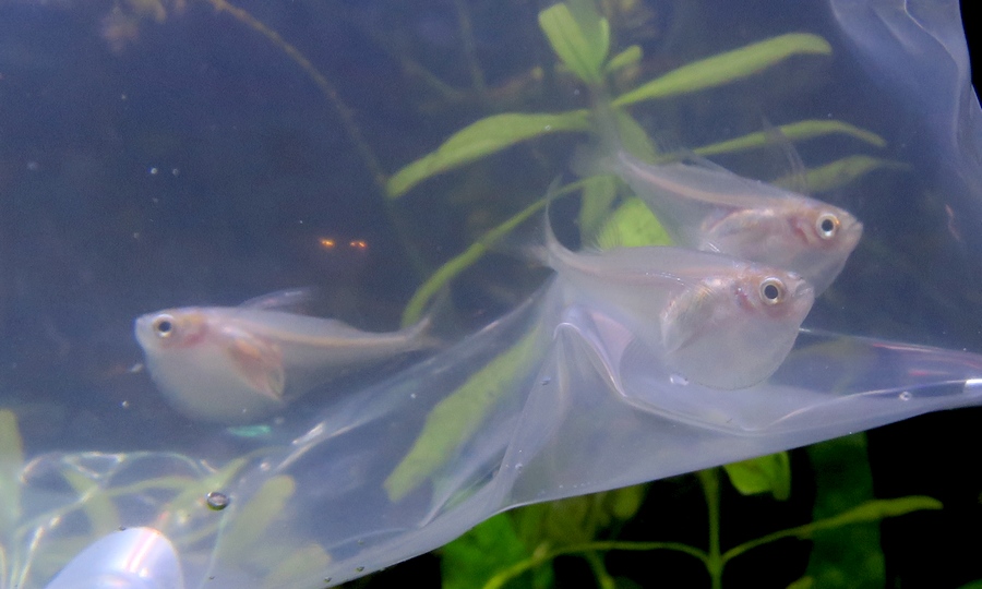 ■グラスブラッドフィン :¥180 透明な体で、尾びれが赤い繊細な美しさのあるテトラです。 |