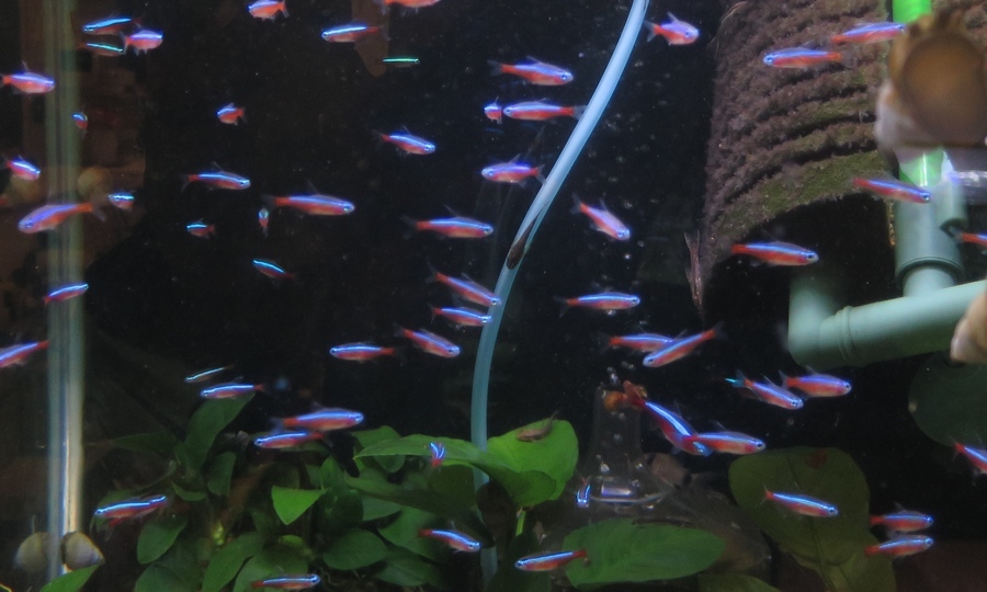 (売切れ)(ブラジル産):¥300 ネオンテトラより一回り小さくスマートな近縁種です。赤色が薄く、青いラインが目立ちます。 |