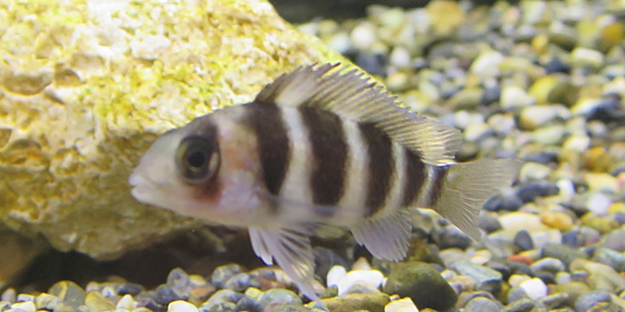 ■チェッカーボードシクリッド :¥1200 体にチェッカー模様が入る細身のドワーフシクリッドです。 |