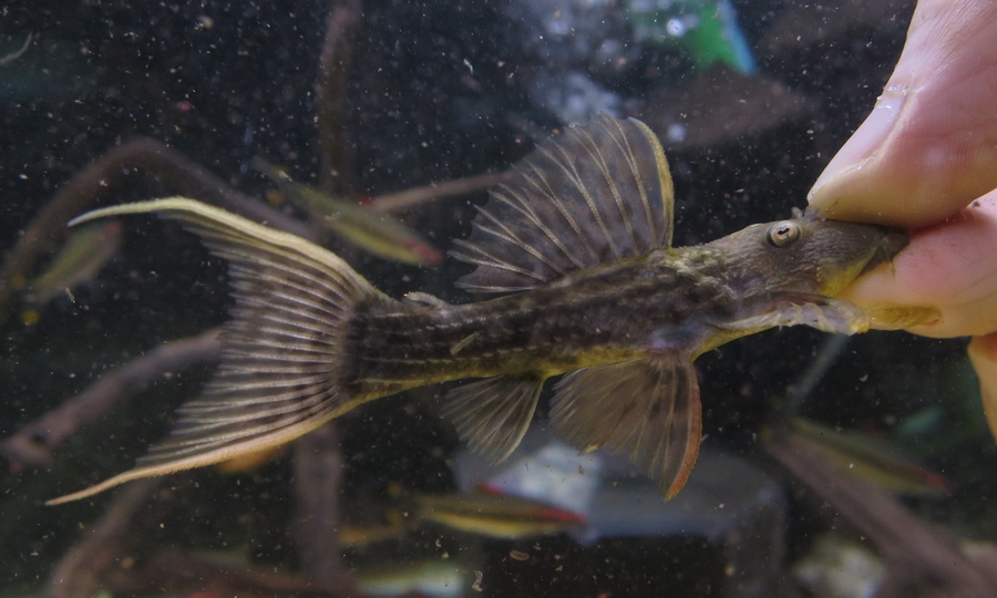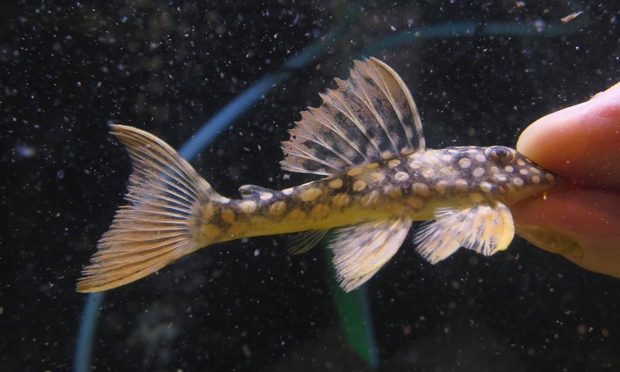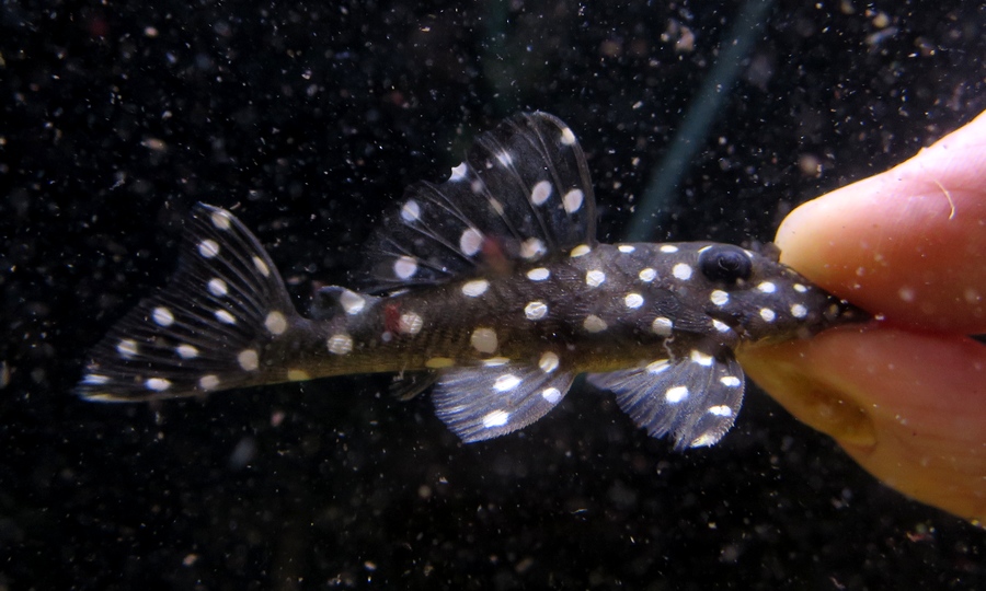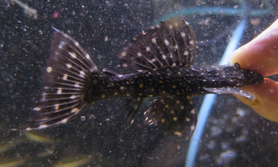 ■キングオブギャラクシートリムプレコ"クルアウナ" 25.9入荷 8cm| (調整中)¥22000 名前を略して「キンギャラ」の名前で親しまれる大型プレコで、黒に白のスポットが全身に入ります。棘が密生する体表が特徴のシュードアカンティクス属の仲間です。 |